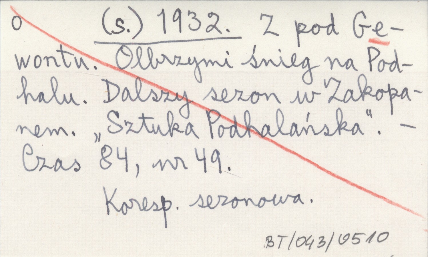 (s.) 1932 Z pod Gewontu. Olbrzymi śnieg na Podhalu. Dalszy sezon w Zakopanem. "Sztuka Podhalańska".