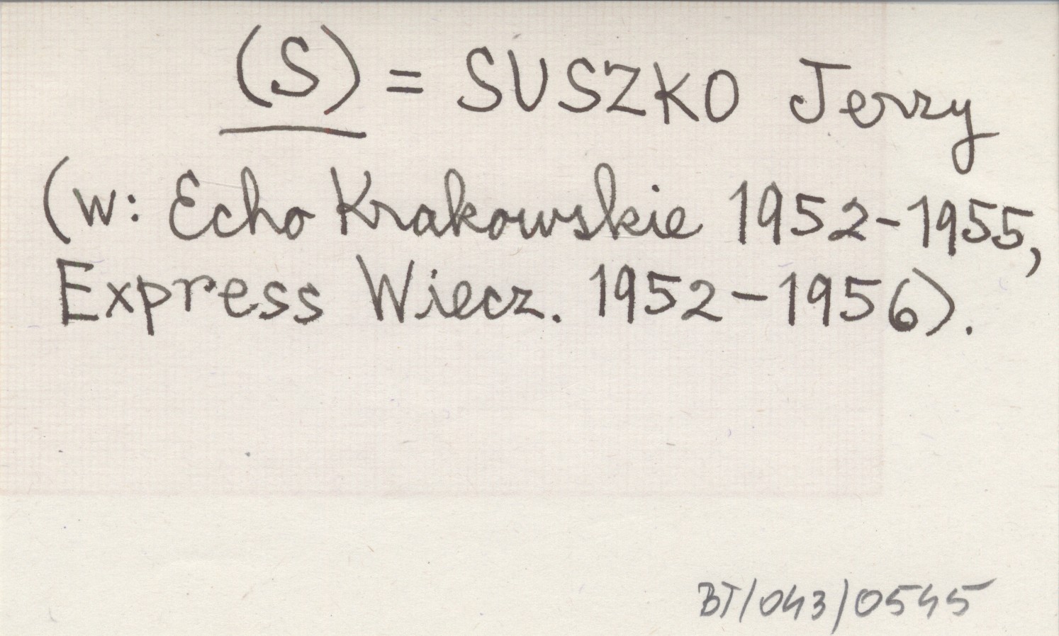 (S) SUSZKO Jerzy w: Echo Krakowskie 1952-1955, Express Wiecz. 1952-1956.