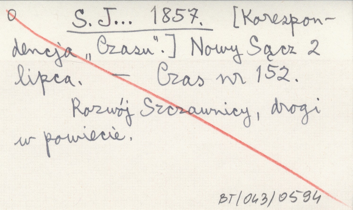 S. J... 1857 [Korespondencja "Czasu".] Nowy Sącz 2 lipca.