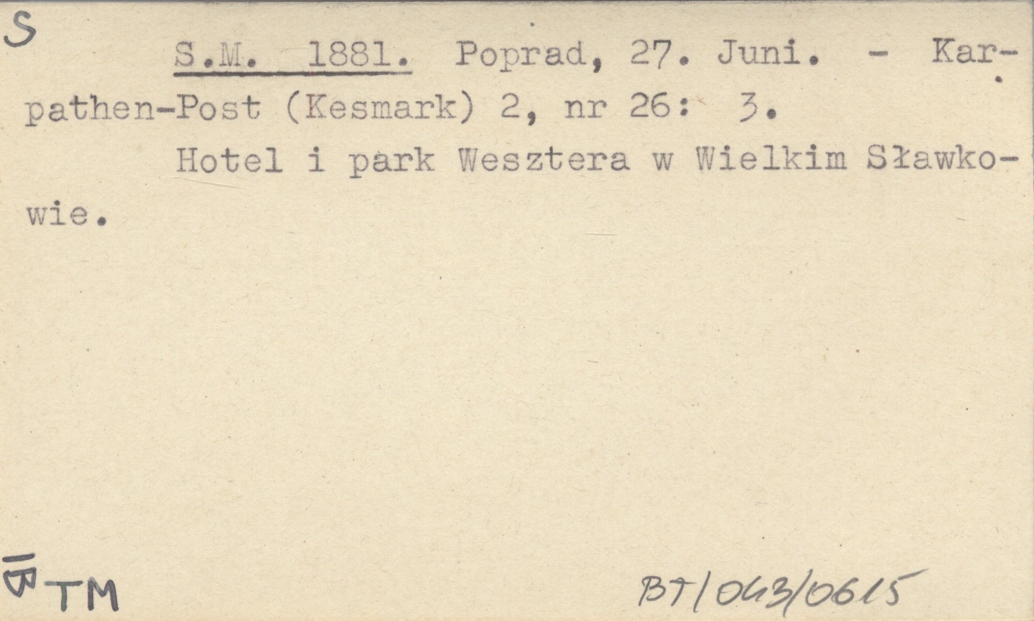 Karpathen-Post (Kesmark) , 2, nr 26: 3. Hotel i park Wesztera w Wielkim Sławkowie.