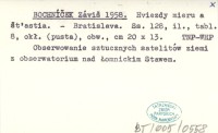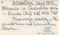BOCHNÍČEK Závią 1957 Výsledky pozorovania umelej sovietskej druľice Zeme zo Skalnatého Plesa.