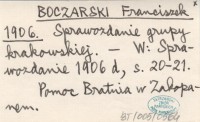 BOCZARSKI Franciszek 1906 Sprawozdanie grupy krakowskiej.