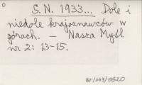 S. N. 1933... Dole i niedole krajoznawców w górach.