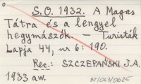 S. O. 1932 A Magas Tátra és a lengyel hegymászók.