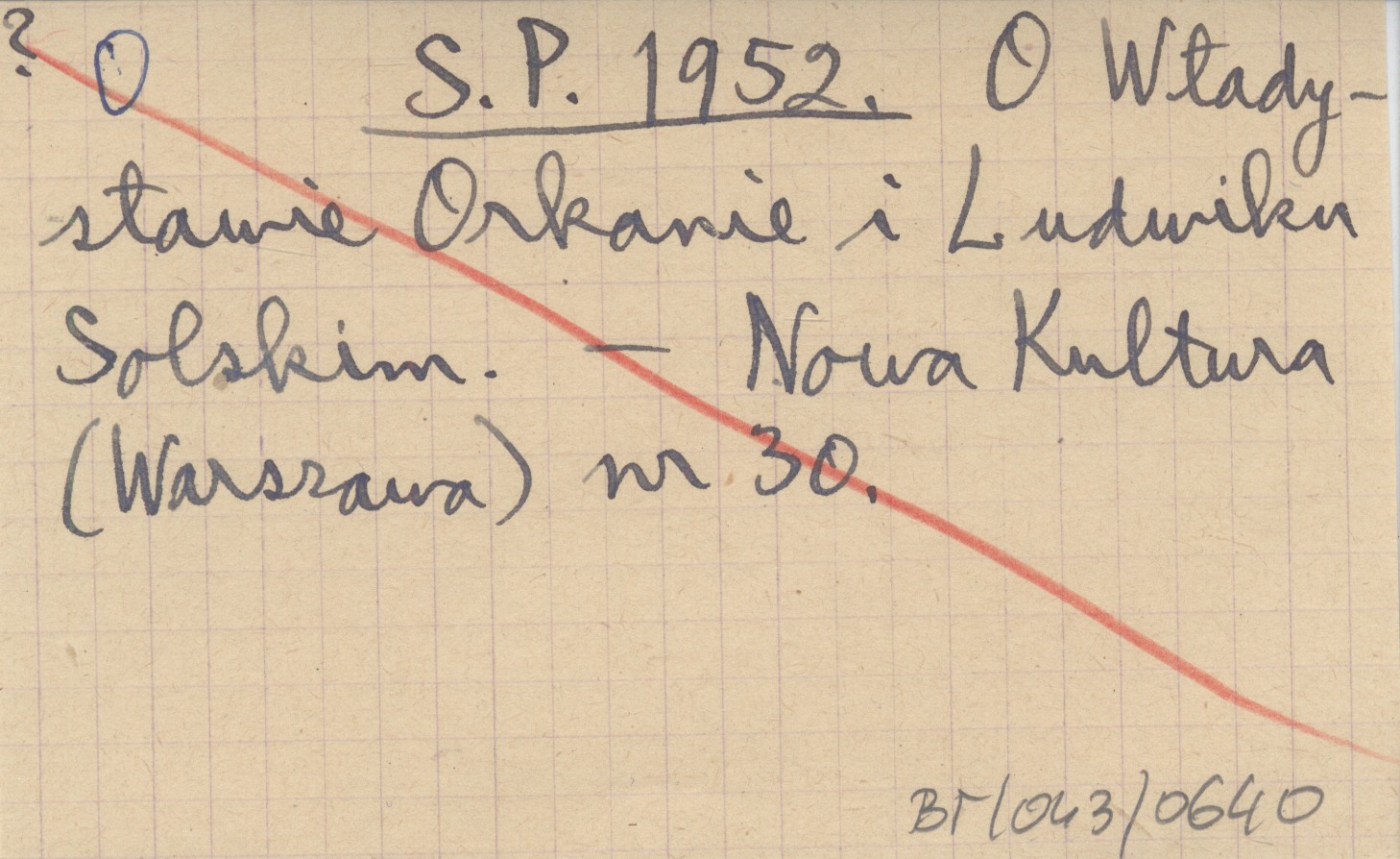 S. P. 1952 O Władysławie Orkanie i Ludwiku Solskim.