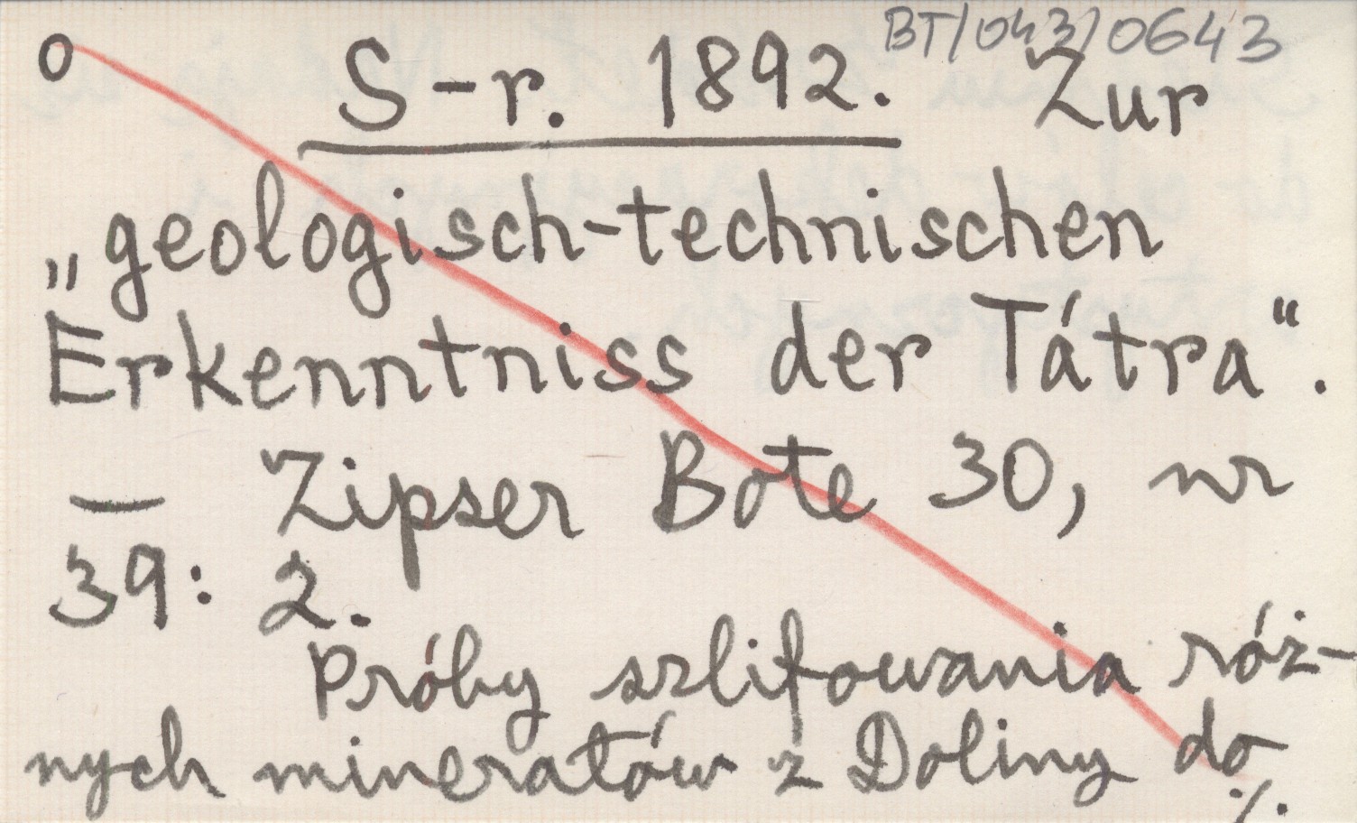 S-r. 1892 Zur "geologisch-technischen Erkenntniss der Tátra".