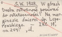 S. W. 1928 W górach trzeba ostrożność posuwać do ostateczności! Na marginesie śmierci śp. Leporowskiego.