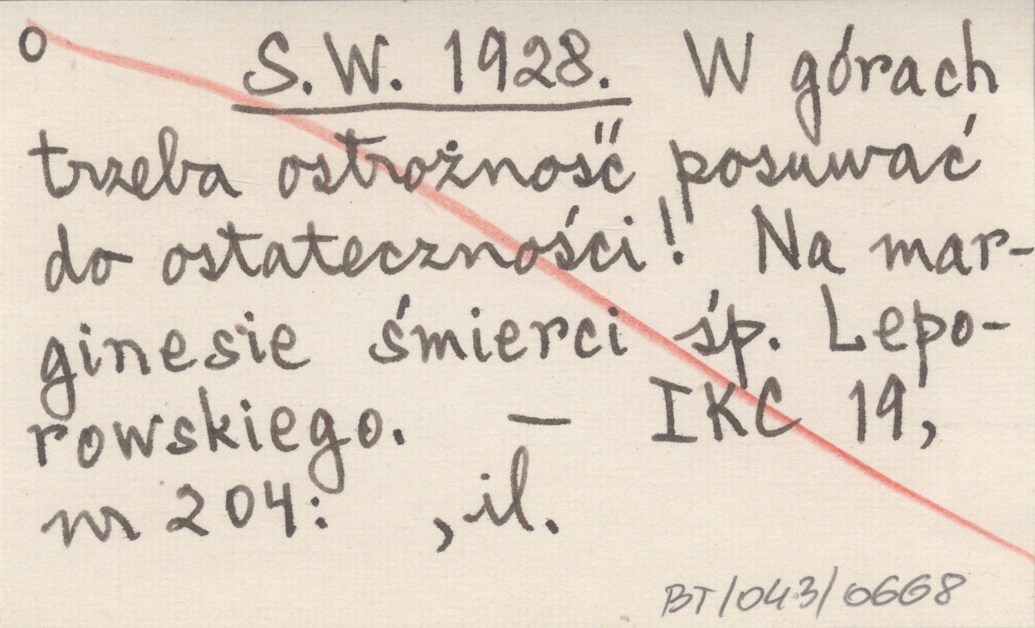 S. W. 1928 W górach trzeba ostrożność posuwać do ostateczności! Na marginesie śmierci śp. Leporowskiego.