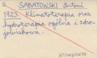SABATOWSKI Antoni 1923 Klimatoterapia oraz hydroterapia ogólna i zdrojowiskowa.