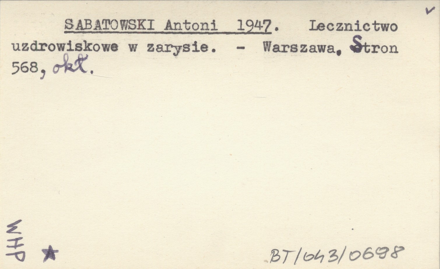 SABATOWSKI Antoni 1947 Lecznictwo uzdrowiskowe w zarysie.