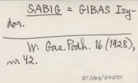SABIG J. GIBAS Izydor Gazeta Podhalańska 16 (1928), nr 45 ; 17 (1929), nr 29, 30, 41, 43, 47 ; 18 (1930), nr 3, 6, 12, 14, 24, 49 ; 19 (1931), nr 35-39.