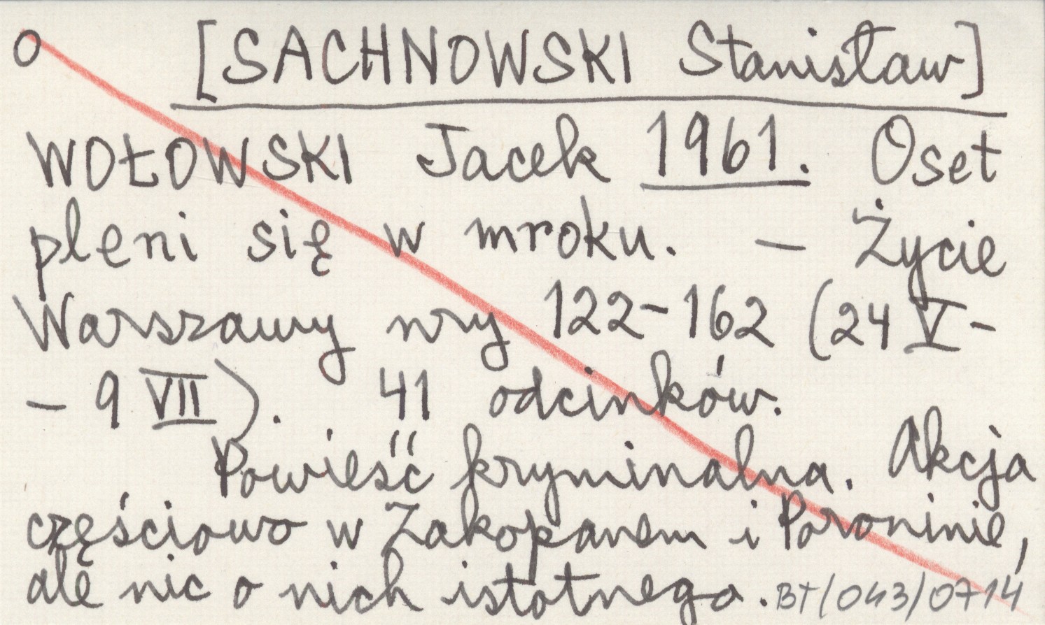 WOŁOWSKI Jacek [SACHNOWSKI Stanisław] 1961 Oset pleni się w mroku.