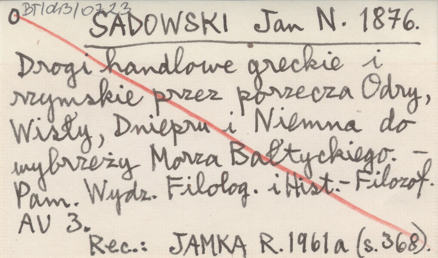 SADOWSKI Jan N. 1876 Drogi handlowe greckie i rzymskie przez porzecza Odry, Wisły, Dniepru i Niemna do wybrzeży Morza Bałtyckiego.
