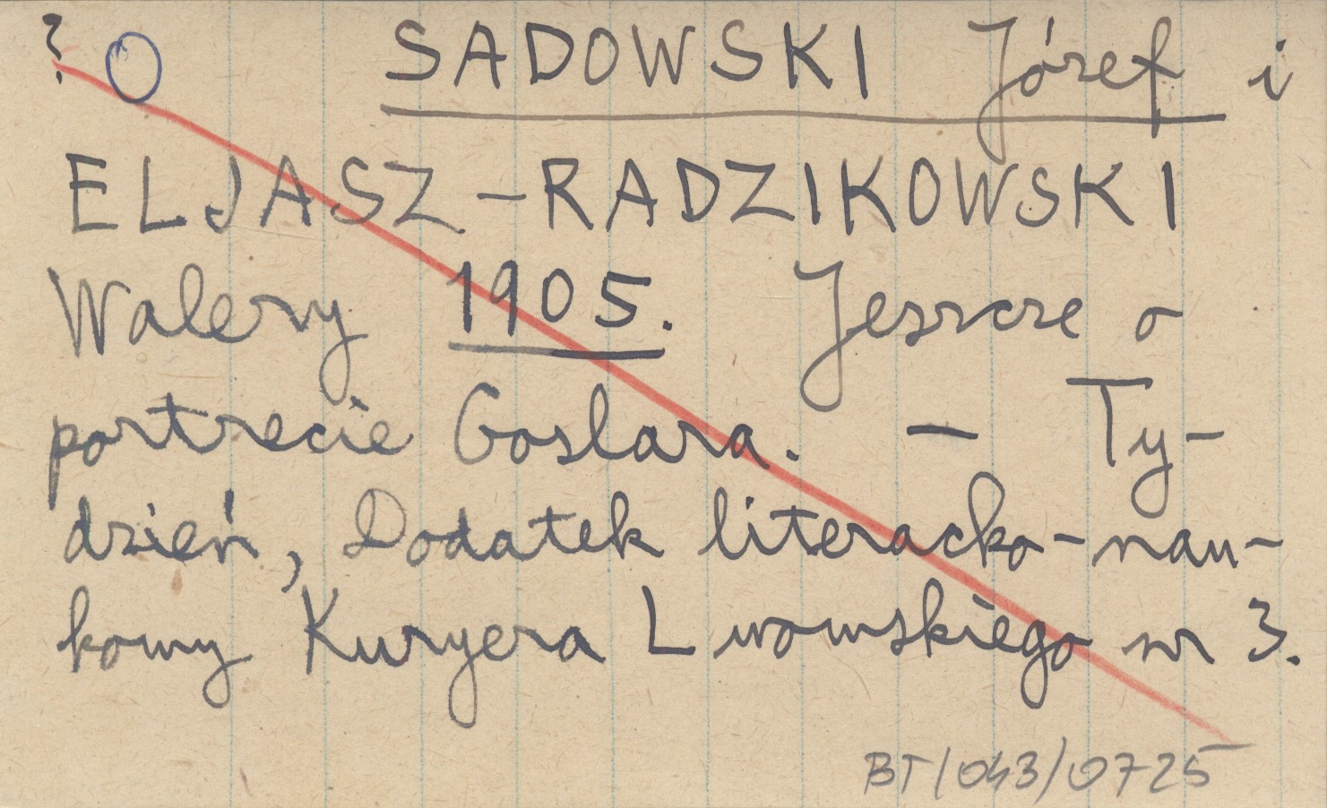 SADOWSKI Józef ELJASZ-RADZIKOWSKI, Walery. ; 1905 Jeszcze o portrecie Goslara.