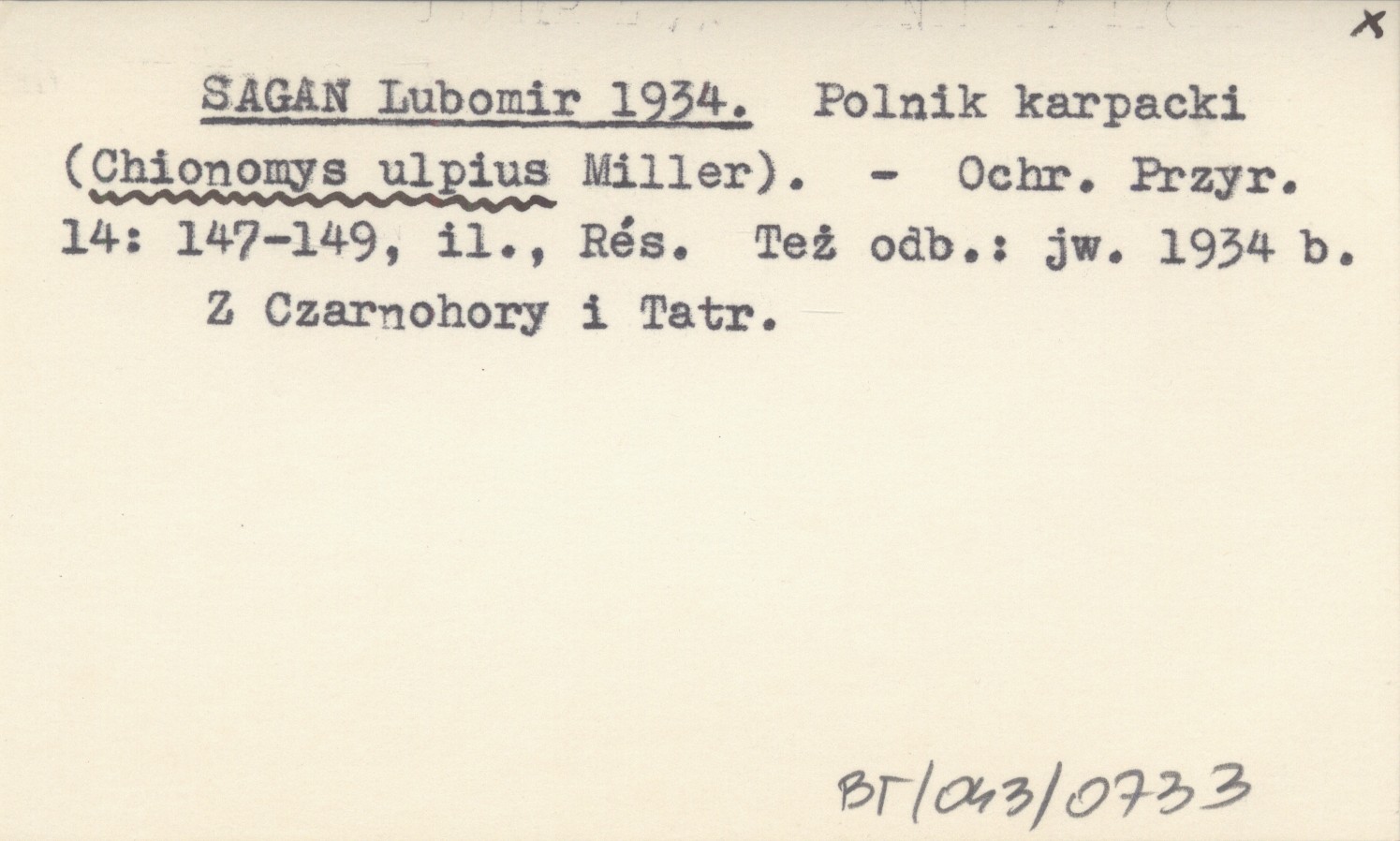 Ochrona Przyrody, 14: 147-149, il., Rés. Z Czarnohory i Tatr. Też odb.: jw. 1934 b