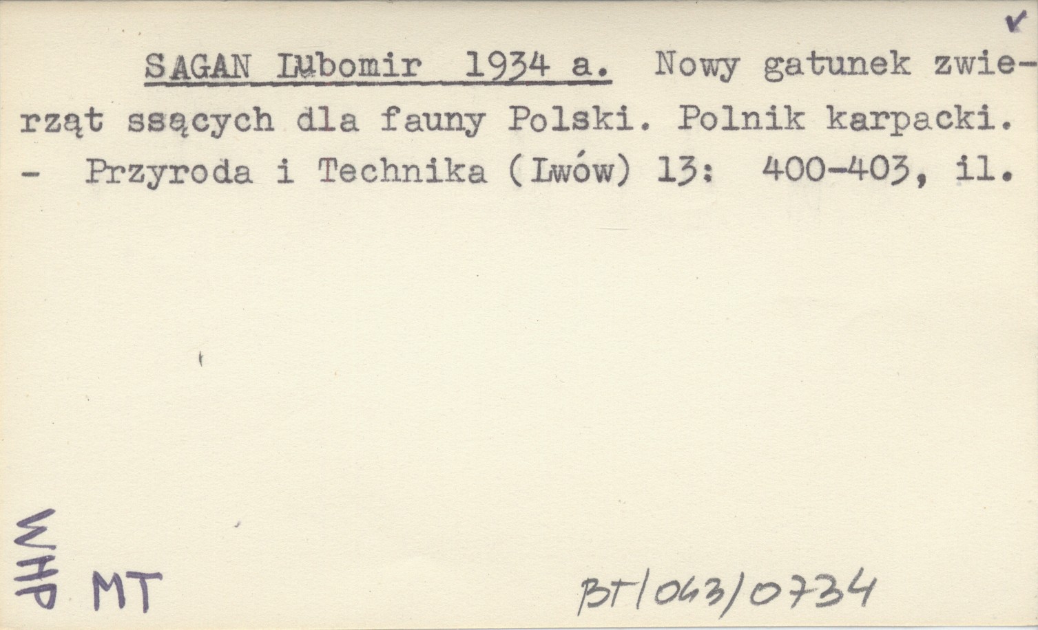 SAGAN Lubomir 1934 a Nowy gatunek zwierząt ssących dla fauny Polski. Polnik karpacki.