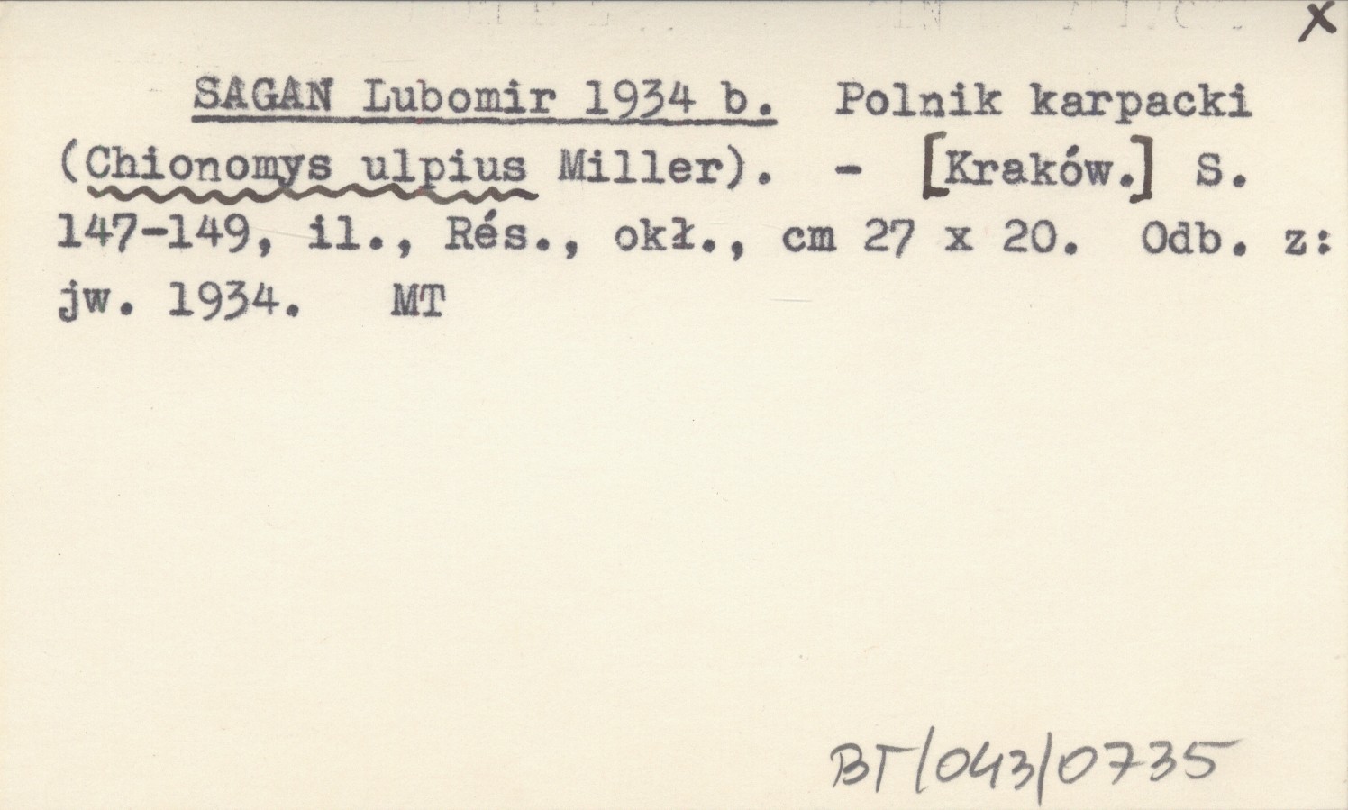 SAGAN Lubomir 1934 b Polnik karpacki (Chionomys ulpius Miller).