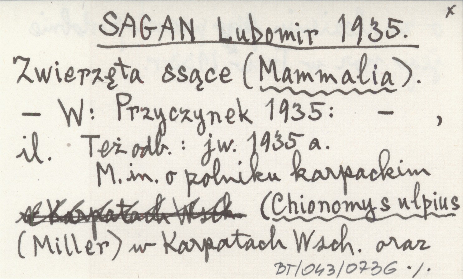 Przyczynek 1935. , Il. M.in. o polniku karpackim (Chionomys ulpius Miller) w Karpatach Wsch. oraz o znalezieniu prawdopodobnie jego nor w Tz w 1933 r. Też odb.: jw. 1935 a