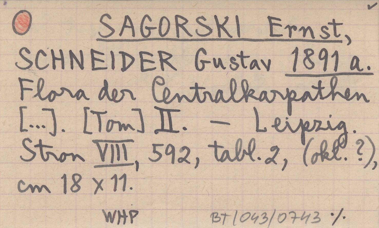 SAGORSKI Ernst SCHNEIDER, Gustav. ; 1891 a Flora der Centralkarpathen [...]. [Tom] II.