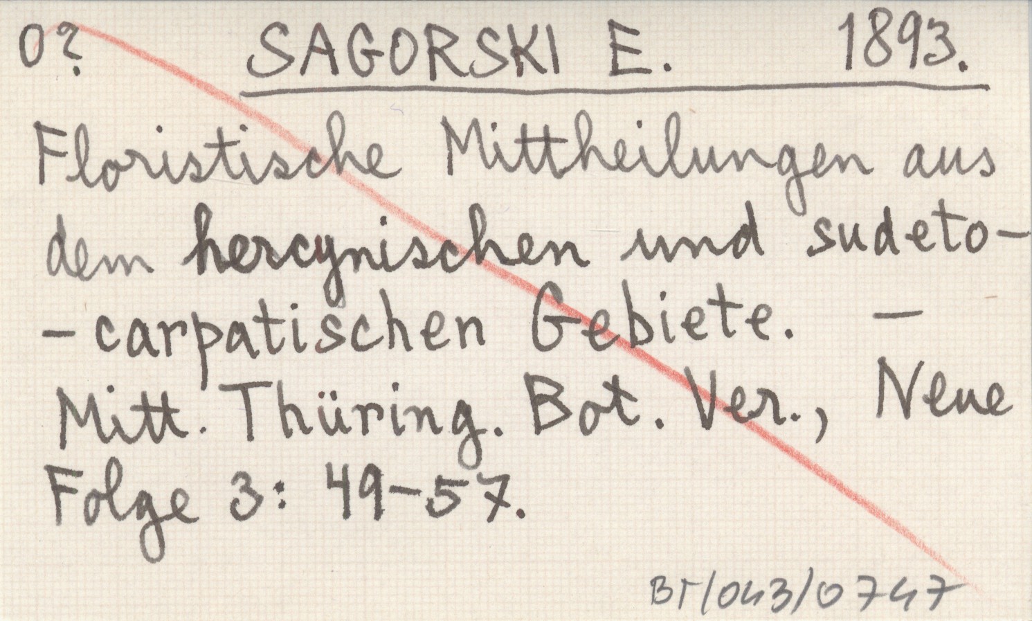 SAGORSKI E. 1893 Floristische Mittheilungen aus dem hercynischen und sudeto-carpatischen Gebiete.