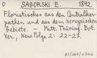 SAGORSKI E. 1892 Floristisches aus den Centralkarpathen und aus dem hercynischen Gebiete.