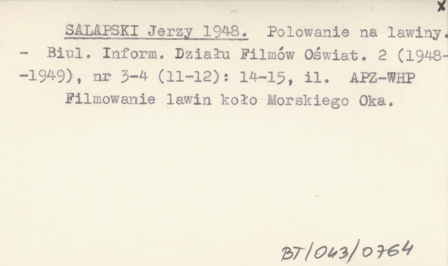 Biuletyn Informacyjny Działu Filmów Oświatowych, 2 (1948-1949), nr 3-4 (11-12): 14-15, il. Filmowanie lawin koło Morskiego Oka.