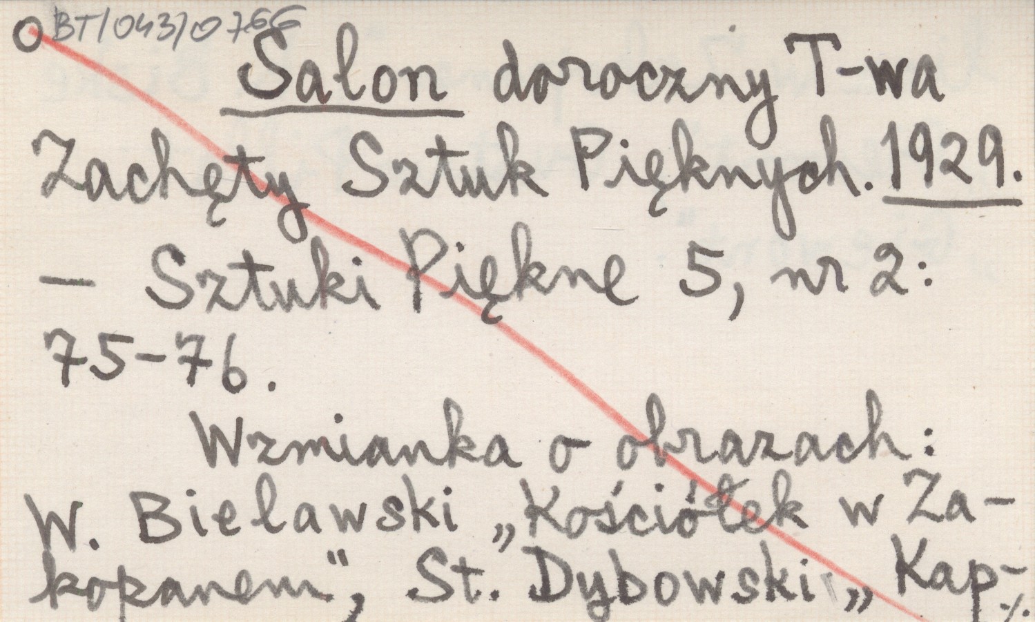 Sztuki Piękne, 5, nr 2: 75-76. Wzmianka o obrazach: W. Bielawski "Kościółek w Zakopanem", St. Dybowski "Kaplica w Zakopanem", K. Biske "Giewont", Gustaw Pillati "Giewont".