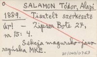 Alapi SALAMON Tódor 1889 Tisztelt szerkesztö úr!