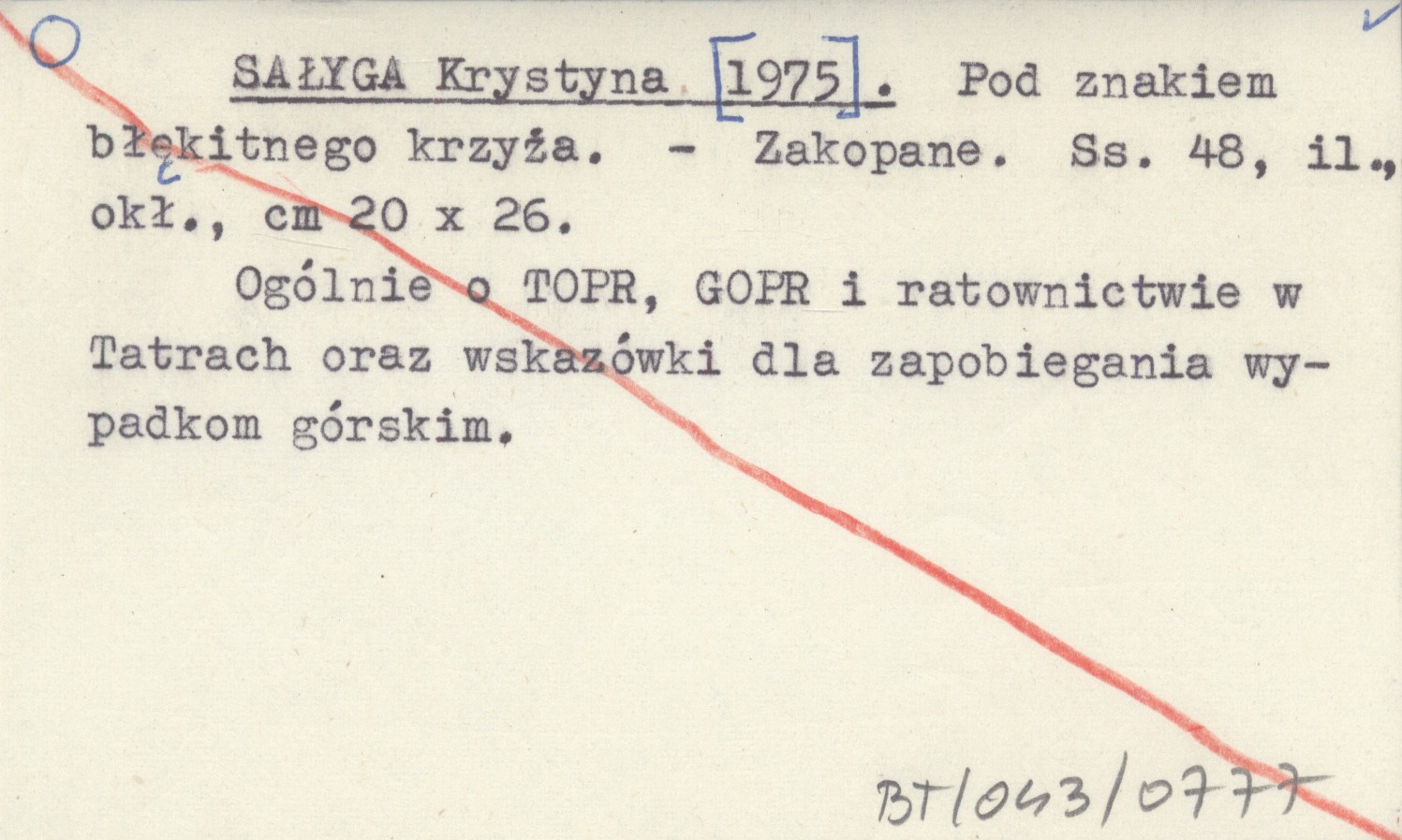 SAŁYGA Krystyna [1975] Pod znakiem błękitnego krzyża.