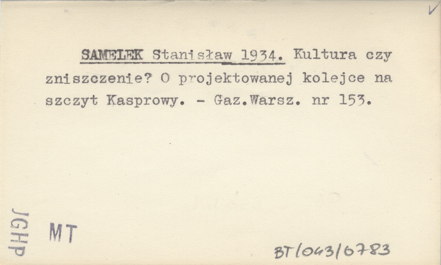 SAMELEK Stanisław 1934 Kultura czy zniszczenie? O projektowanej kolejce na szczyt Kasprowy.