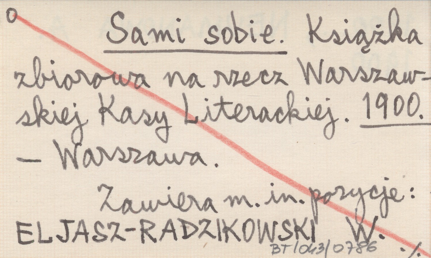 Sami sobie. Książka zbiorowa na rzecz Warszawskiej Kasy Literackiej. 1900