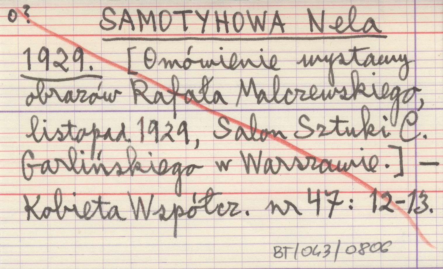 SAMOTYHOWA Nela 1929 [Omówienie wystawy obrazów Rafała Malczewskiego, listopad 1929, Salon Sztuki C. Garlińskiego w Warszawie].