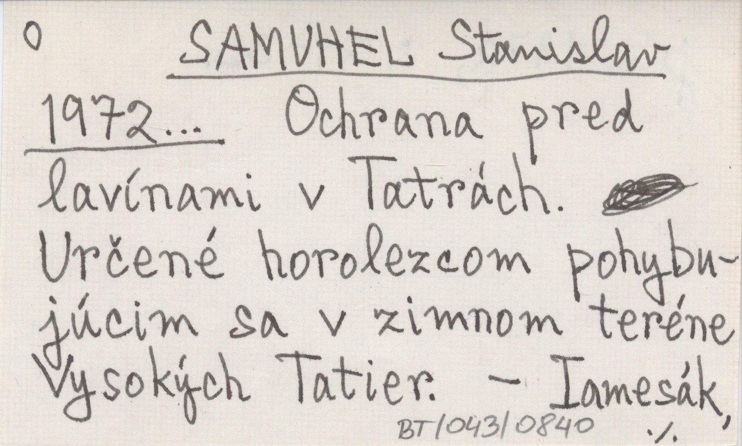 SAMUHEL Stanislav 1972... Ochrana pred lavínami v Tatrách. Určené horolezcom pohybujúcim sa v zimnom teréne Vysokých Tatier.