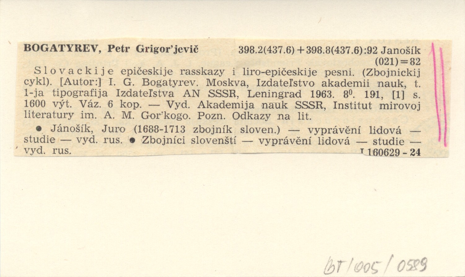 BOGATYREW Petr Grigorewicz 1963 Slowackije epiczeskije raskazy i liro-epiczeskije pesni. (Zbojnicki cikl.).