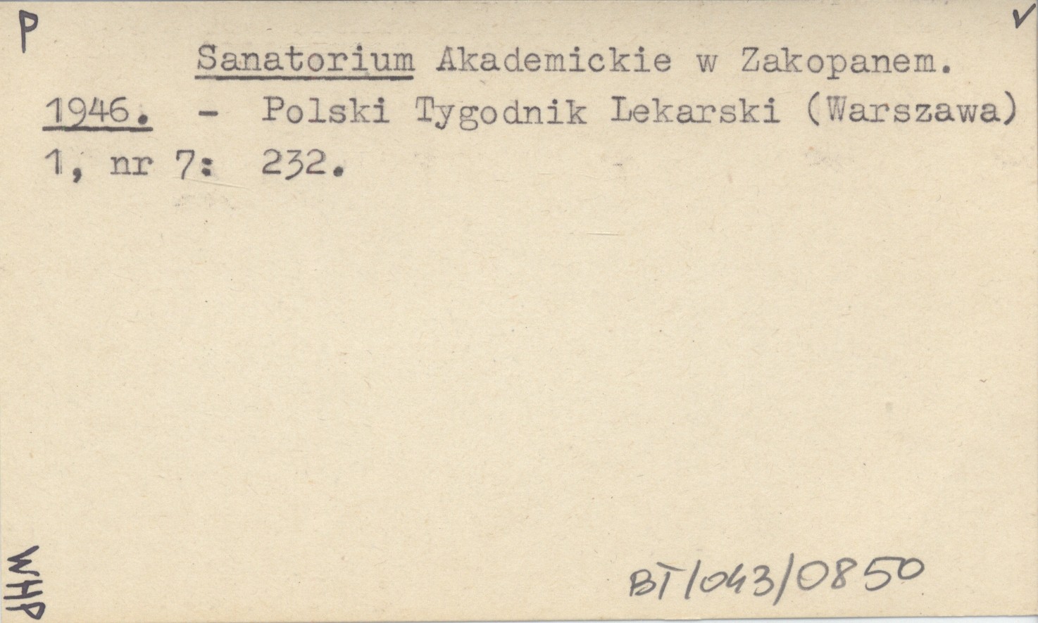 Polski Tygodnik Lekarski (Warszawa) , 1, nr 7: 232.