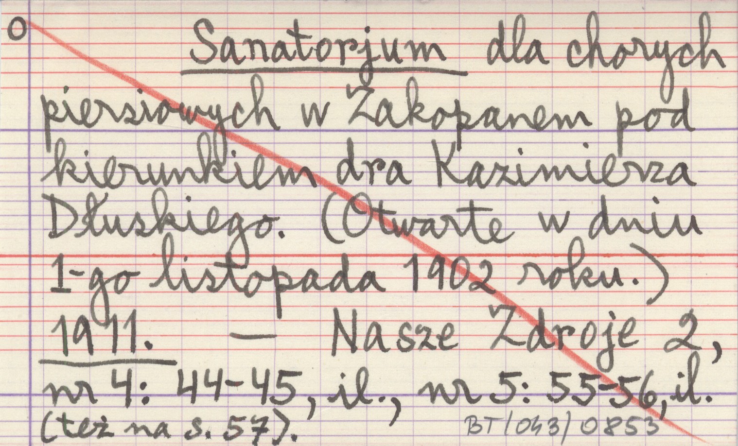 Sanatorjum dla chorych piersiowych w Zakopanem pod kierunkiem dra Kazimierza Dłuskiego. (Otwarte w dniu 1-go listopada 1902 roku). 1911