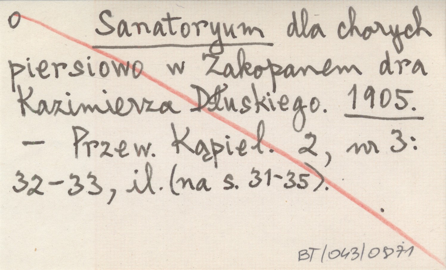 Sanatoryum dla chorych piersiowo w Zakopanem dra Kazimierza Dłuskiego. 1905