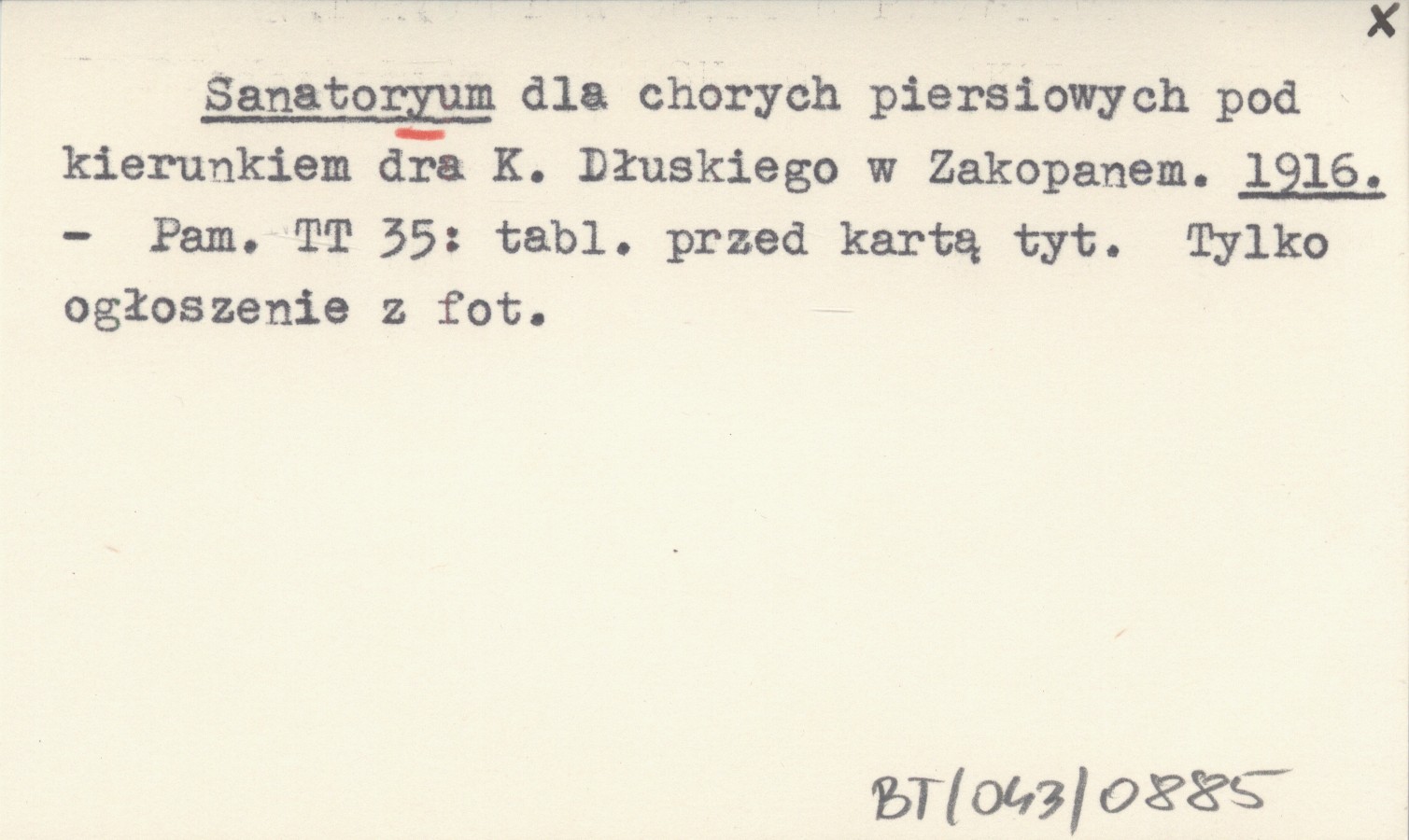 Sanatoryum dla chorych piersiowych pod kierunkiem dra K. Dłuskiego w Zakopanem. 1916