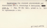 Sanatoryum dla chorych piersiowych pod kierunkiem dra K. Dłuskiego w Zakopanem. 1916