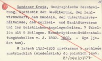 Sandecer Kreis, Geographische Beschreibung, Statistik der Bevölkerung, der Landwirtschaft, des Handels, der Unterthansverhältnisse, des Polizei- und Sanitätswesens und der Geistlichen-Angelegenheiten. 7 Tabellen mit 6 Beilagen. Konskriptions-Evidenzhaltungstabellen v. J. 1802. 1802