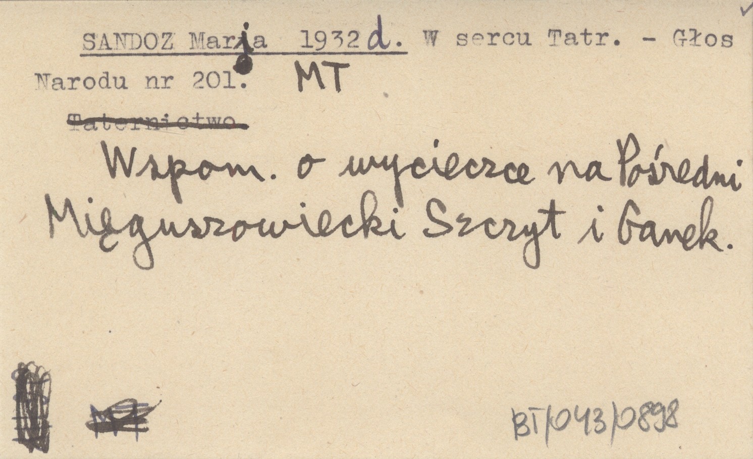 Głos Narodu, Nr 201. Wspom. o wycieczce na Pośredni Mięguszowiecki Szczyt i Ganek.