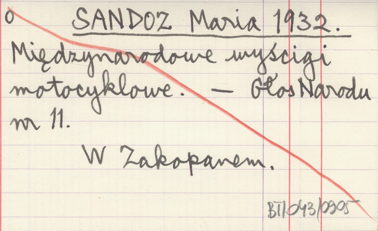 SANDOZ Maria 1932 Międzynarodowe wyścigi motocyklowe.