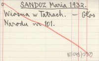 SANDOZ Maria 1932 Nad Morskiem Okiem.