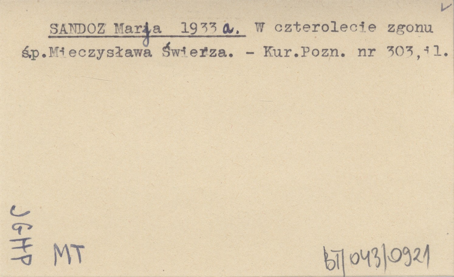 SANDOZ Marja 1933 a W czterolecie zgonu ś.p.Mieczysława Świerza.