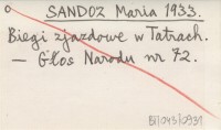 SANDOZ Maria 1933 Biegi zjazdowe w Tatrach.
