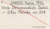 SANDOZ Maria 1933 Urok Demianowskich Jaskiń.