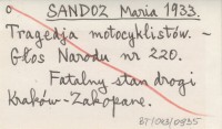 SANDOZ Maria 1933 Tragedja motocyklistów.