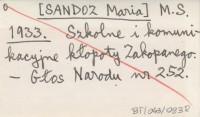 M. S. [SANDOZ Maria] 1933 Szkolne i komunikacyjne kłopoty Zakopanego.