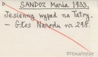 SANDOZ Maria 1933 Jesienny wypad na Tatry.