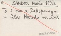 SANDOZ Maria 1933 To i owo z Zakopanego.